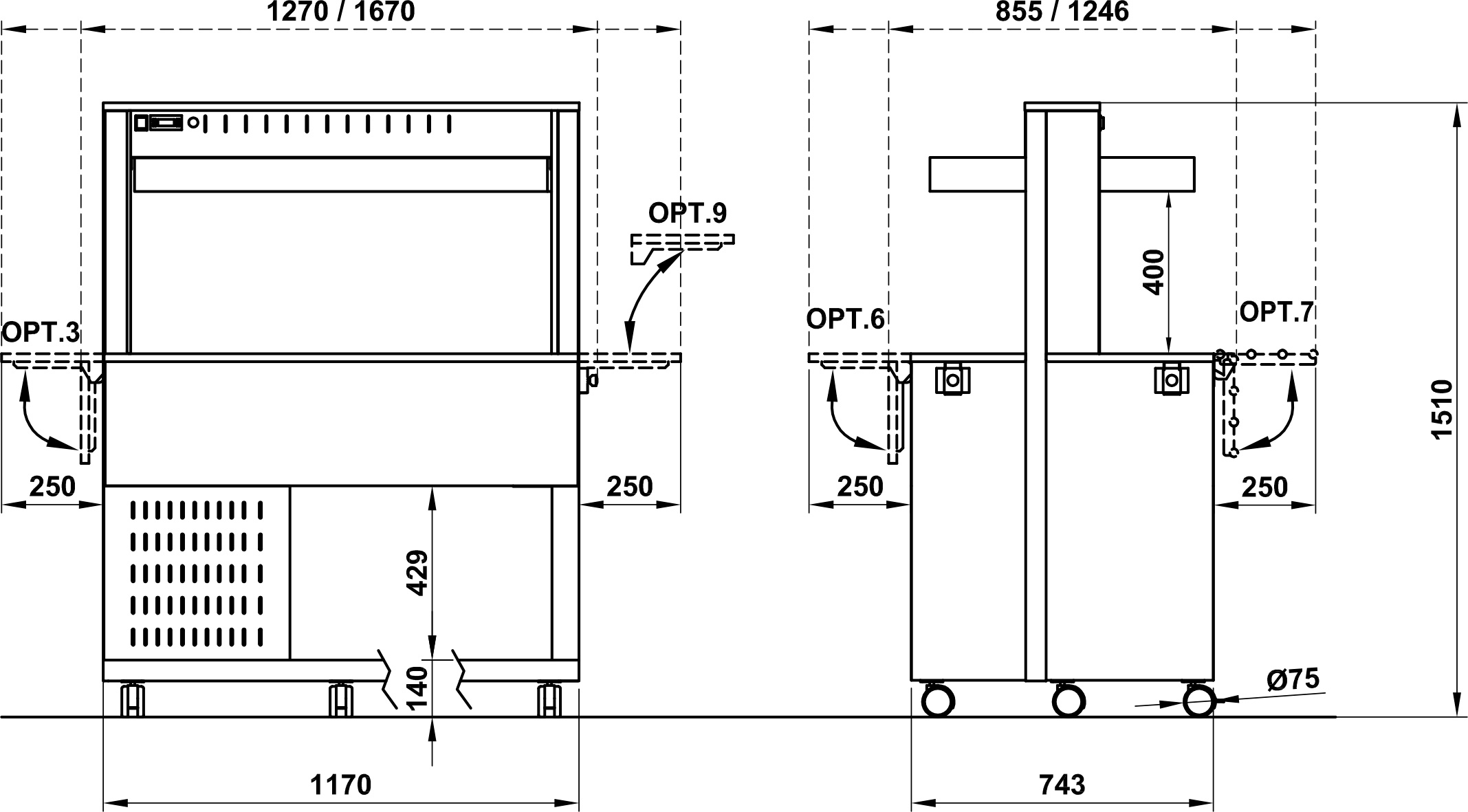 - Abm.: BxTxH 1170 x 743 x 1510 mm