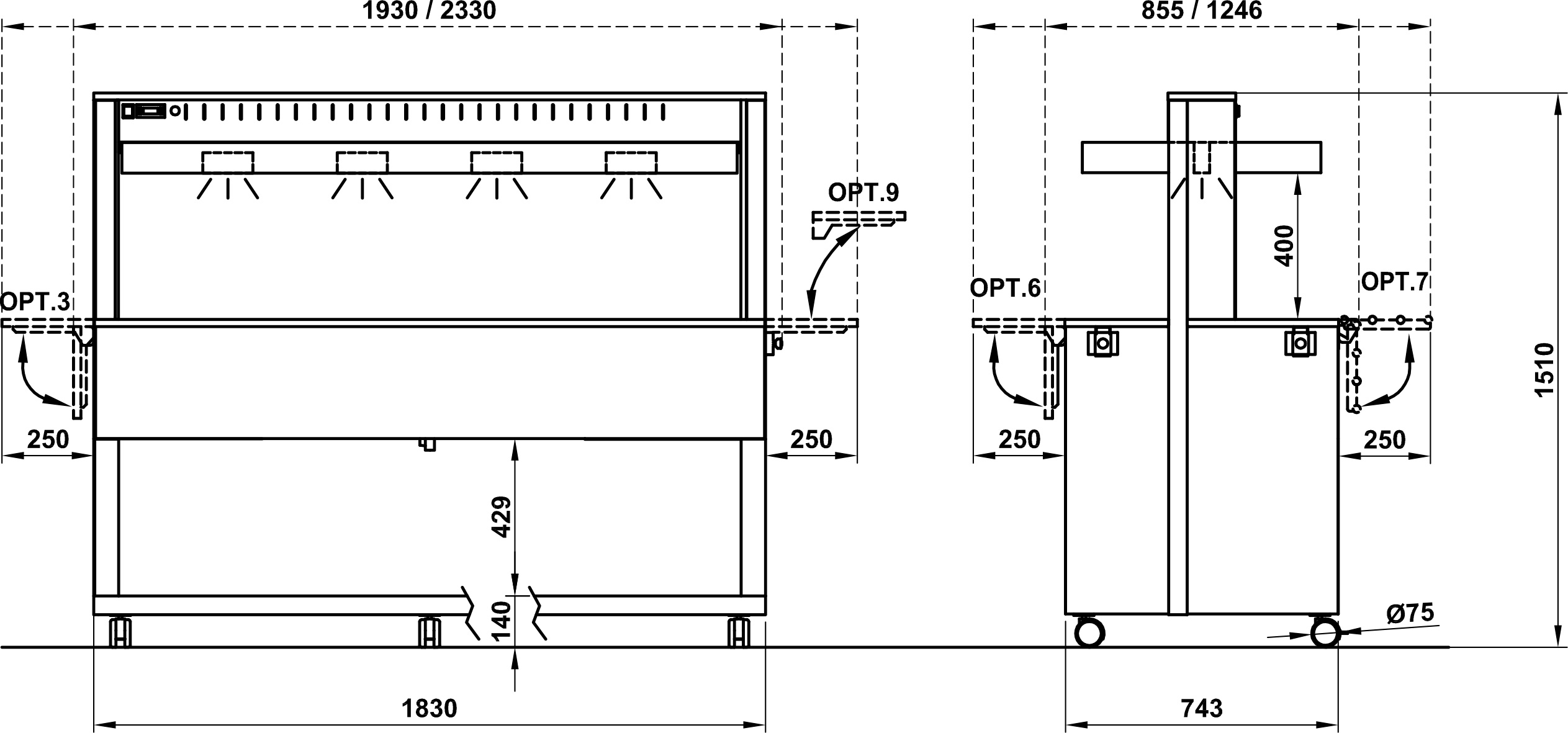 - Abm.: BxTxH 1830 x 743 x 1510 mm